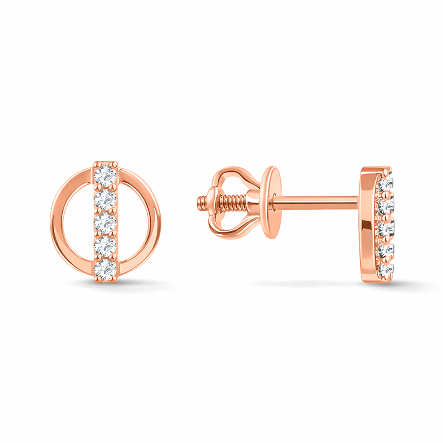 Attractive pousset earrings in 585 rose gold, each with inserts of 5 zirconia, diameter ≈ 6 mm.