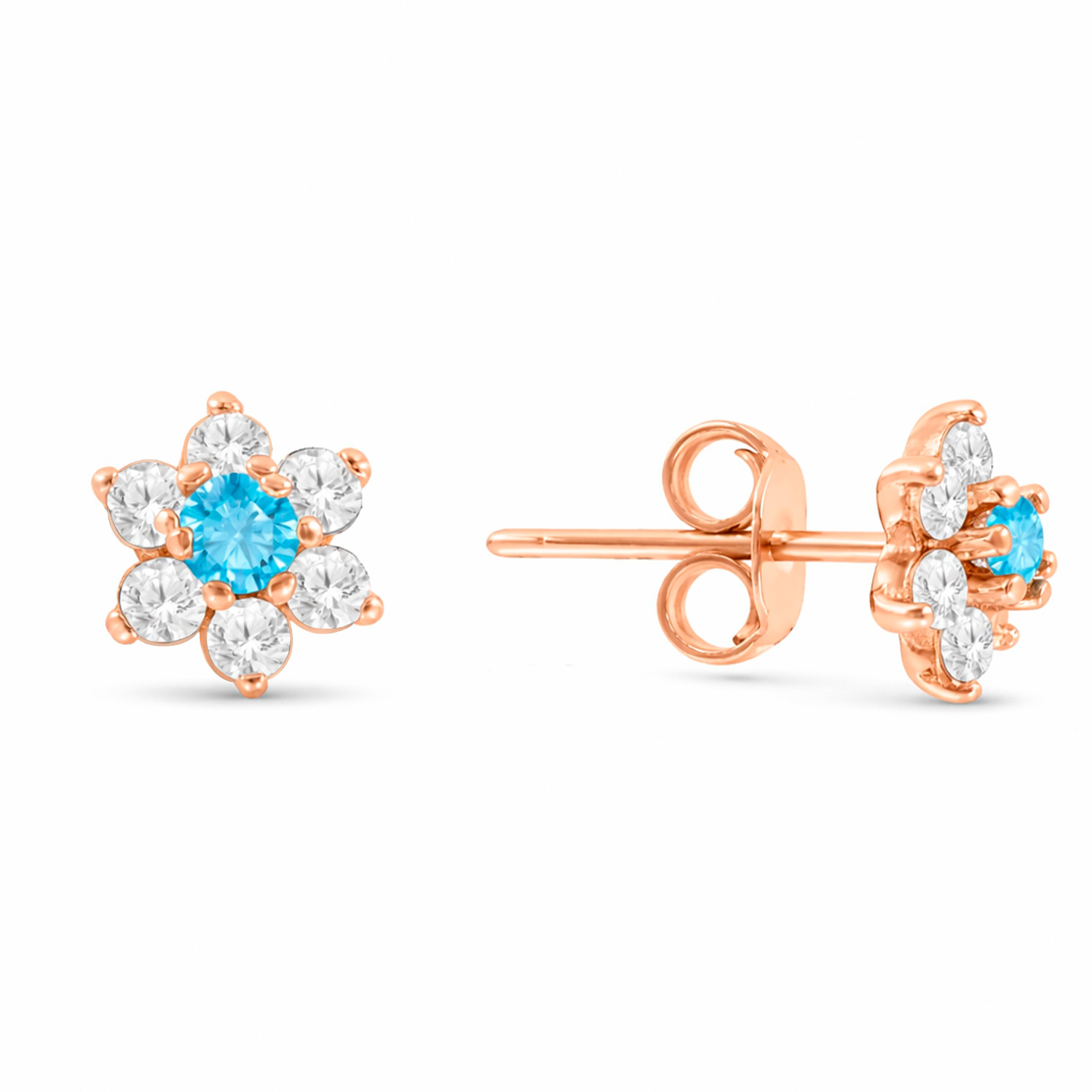 Beautiful stud earrings in 585 rose gold, with zirconia, diameter ≈ 6 mm.