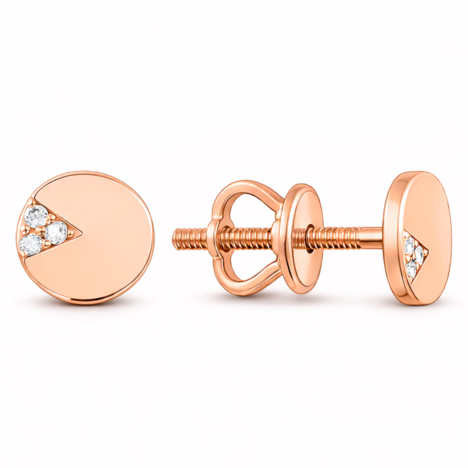 Pretty poussettes in 585 rose gold, with inserts of 3 zirconia, diameter ≈ 6 mm.