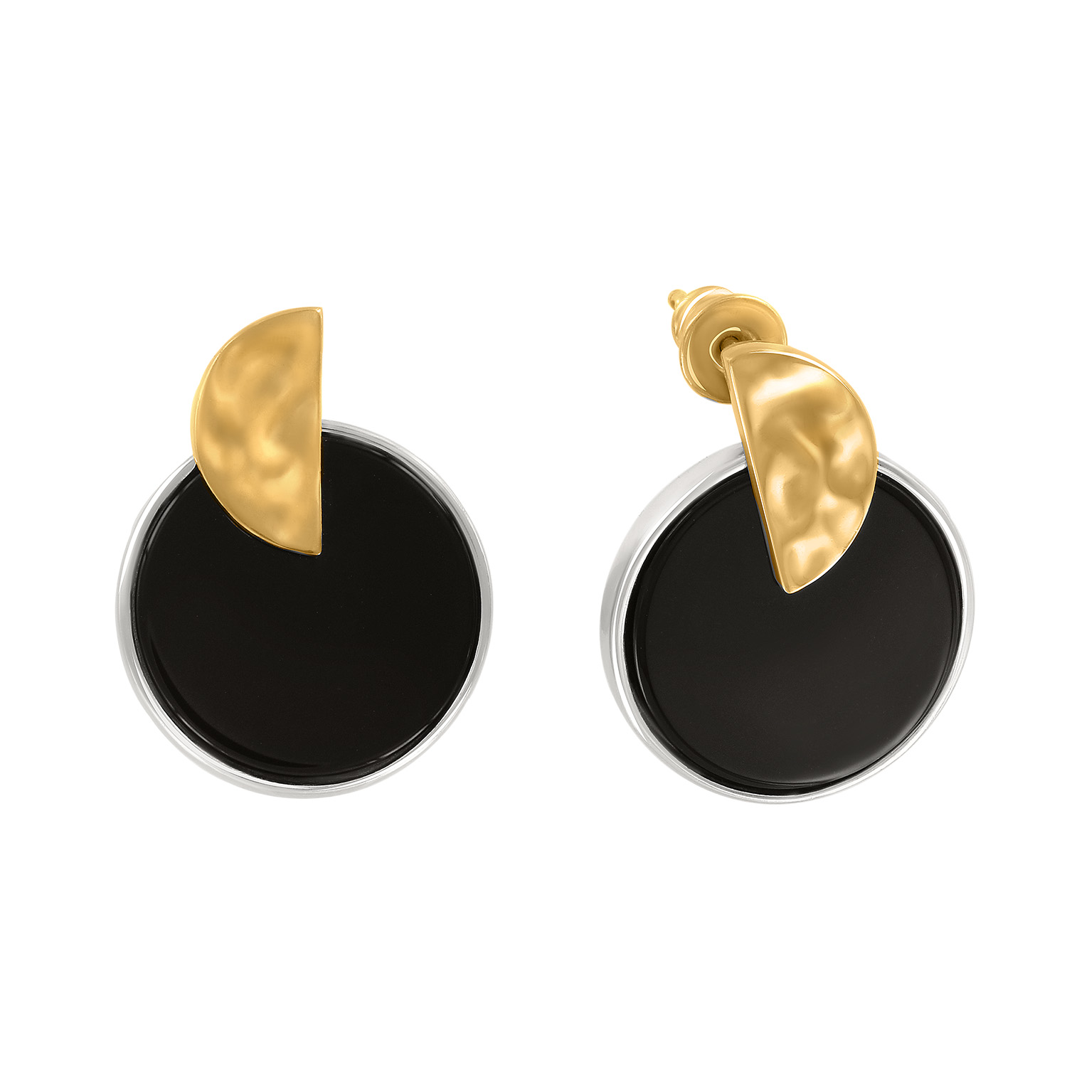 These elegant stud earrings are made from 925 silver, are yellow gold-plated and adorned with precious onyx. The modern design combines shiny, round onyx stones with a textured, golden crescent moon appliqué.Product information: