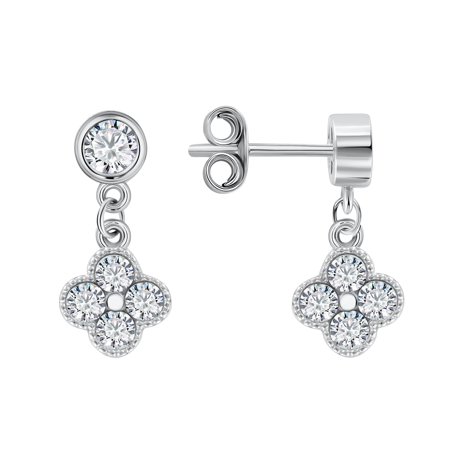 The design with a movable flower element (size approx. 7x7 mm) made of four stones gives the piece of jewelry a romantic and feminine look. With a height of approx. 18 mm, they create a delicate yet eye-catching accent. The sparkle of the zirconia catches the light beautifully and underlines the elegance and style.Perfect for everyday wear and special occasions.
