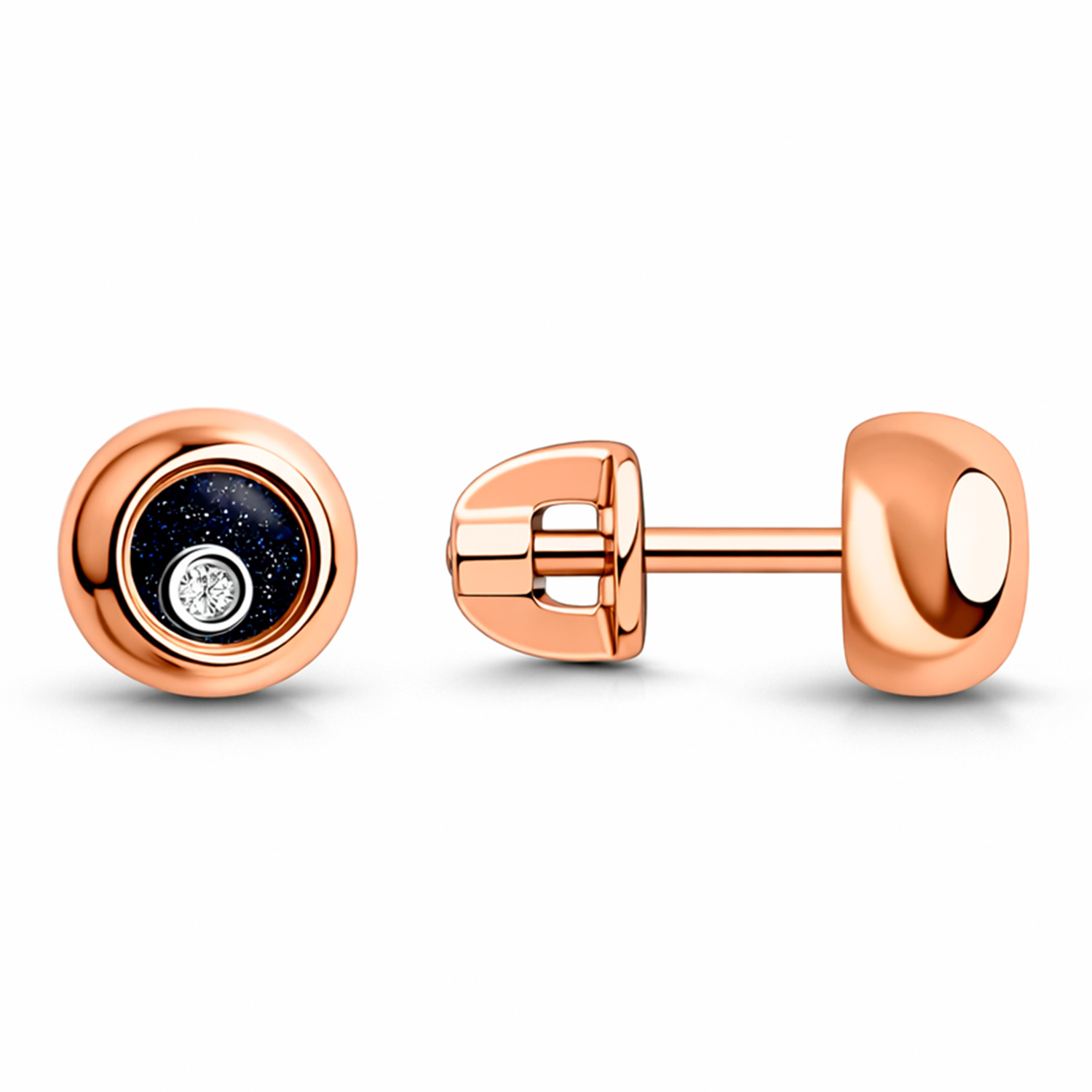 Elegant stud earrings in rose gold 585, with brilliant-cut diamond 0.033 ct. WSI, diameter approx. 7.5 mm, Glass Avanturin HTS, Saphirglass HTS