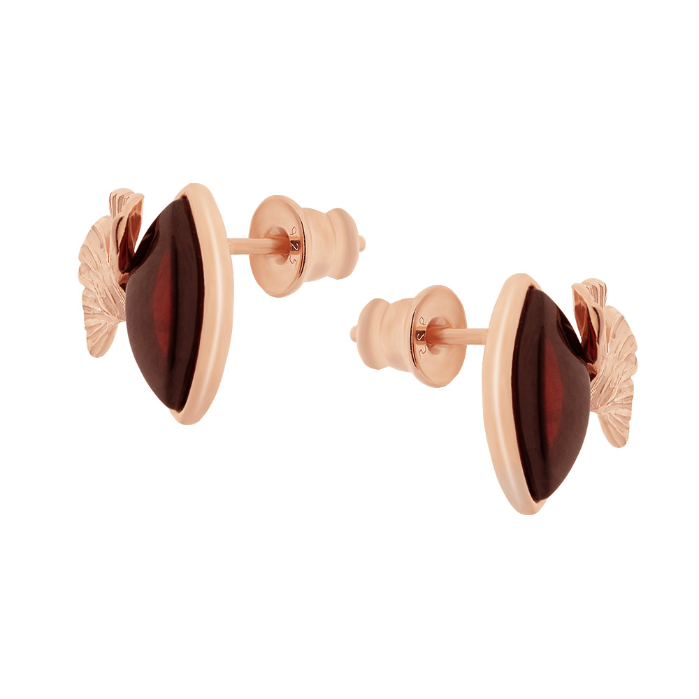 Stud earrings rose gold-plated 925 silver with cherry amber