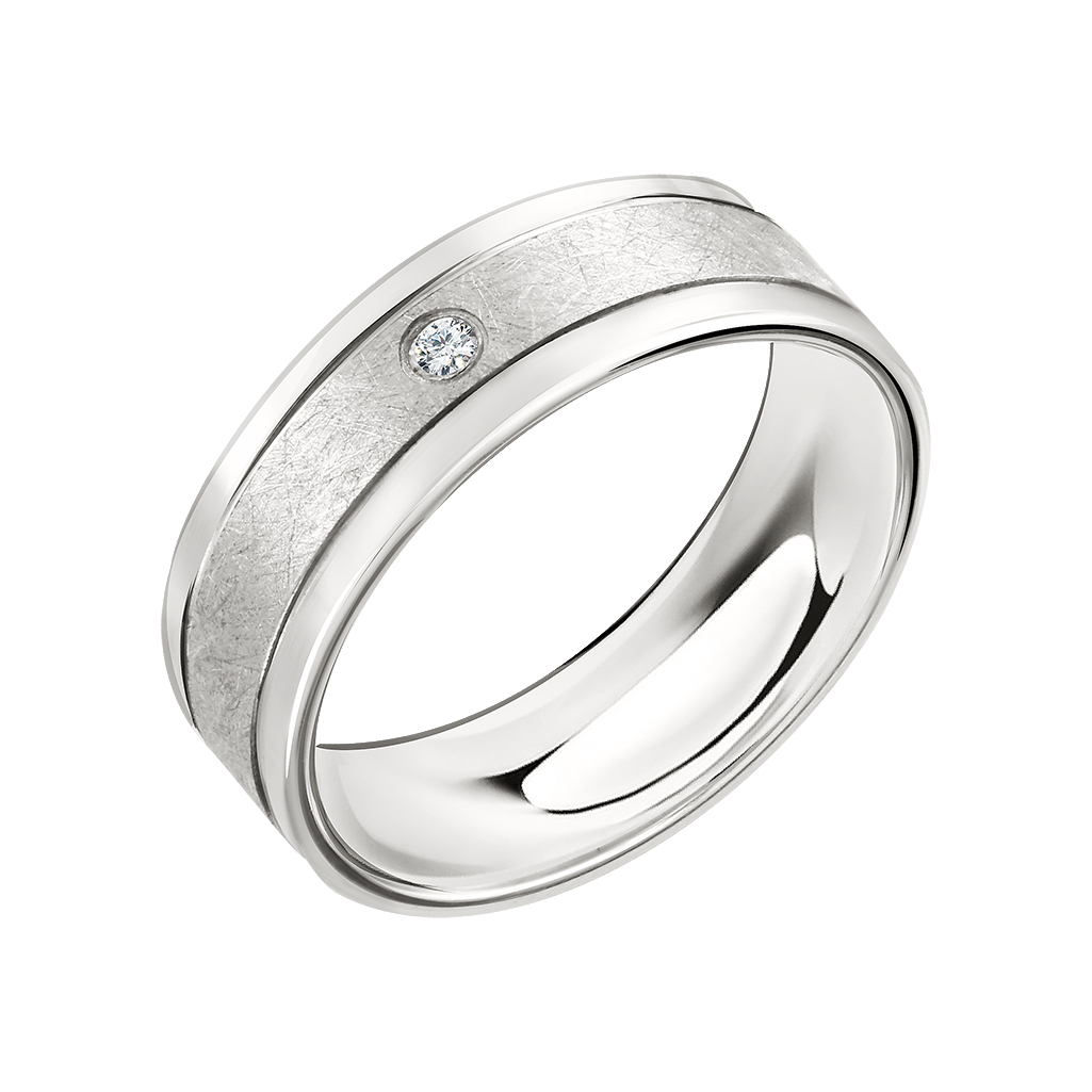 Stylish friendship ring, sterling silver, with zirconia, frosted, width ≈ 6.0 mm
