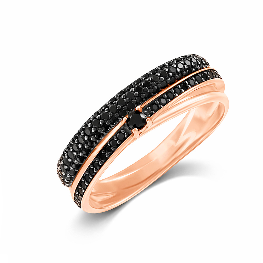 Stylish ladies' ring in 585 rose gold with black zirconia