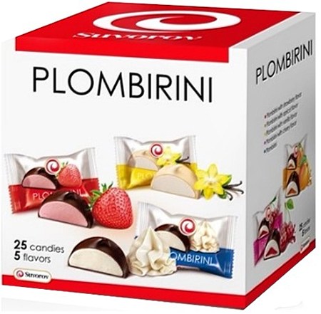 PLOMBIRINI MIX a gift set with the most popular Plombirini flavors: strawberry and apricot flavor, vanilla and cherry flavor and Classic.Ingredients: Sugar, drinking water, cocoa glaze 16% (sugar, hydrogenated palm kernel oil, palm fat, whey powder, alkalized cocoa powder 1.50%, emulsifier: soy lecithin; flavor: vanillin: salt), refined vegetable fat: Sunflower, palm oil, starch molasses, modified potato starch, sweetened condensed milk(whole milk, sugar, lactose), protein powder, thickener: agar-agar, acidity regulator: citric acid, flavors, colorants: E102*, E124*, E132, preservatives: E202, E211.