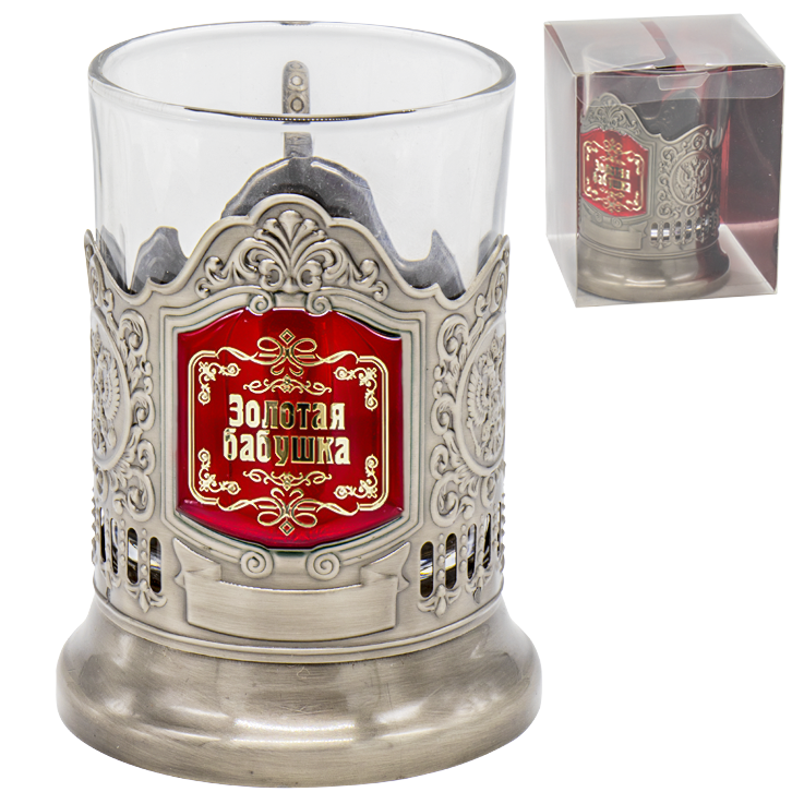 Tea glass holder "Golden granny" with tea glass, 200 ml.