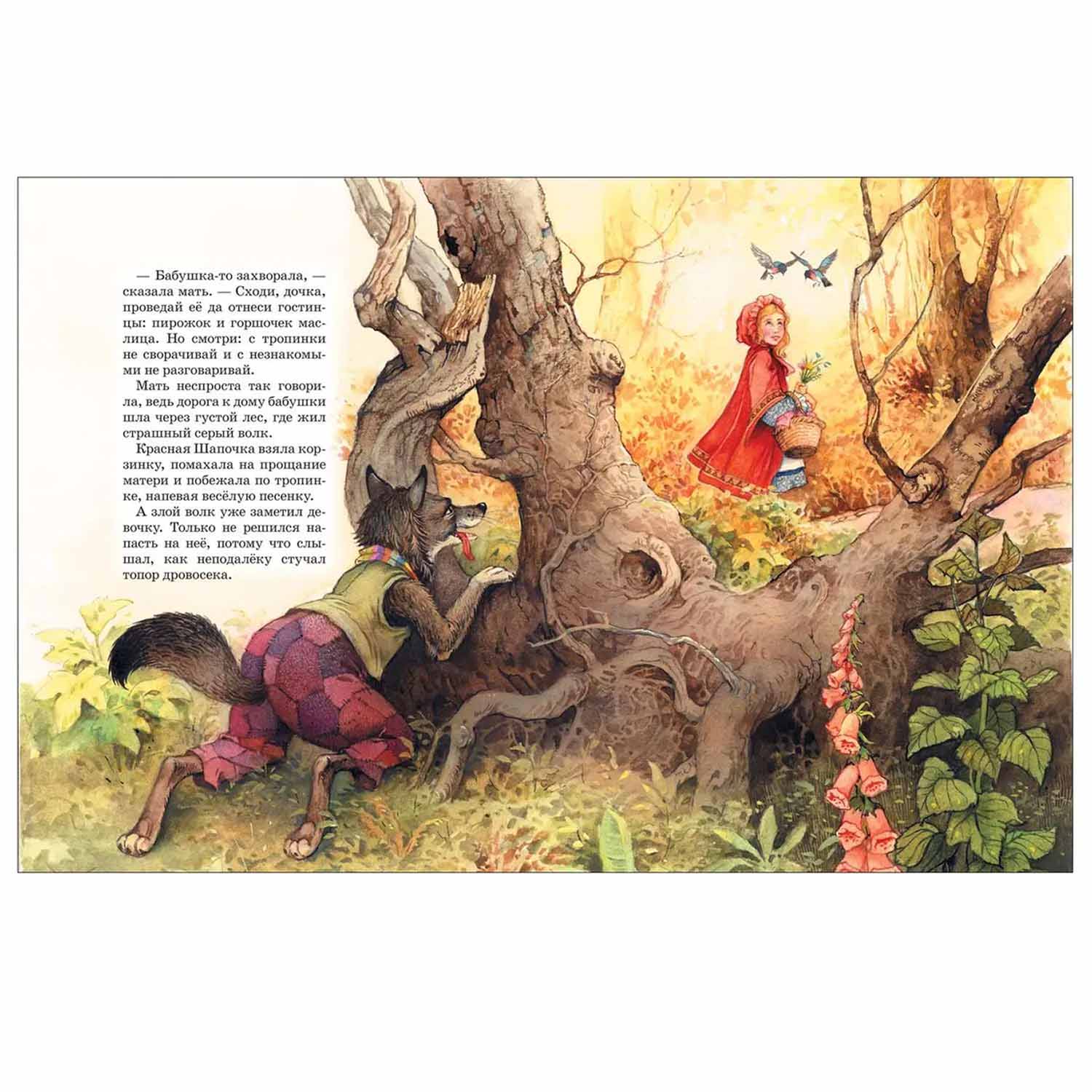 The book contains the fairy tales "Little Red Riding Hood", "The Three Bears", "Hansel and Gretel", "Jack and the Beanstalk", "Puss in Boots", "Cinderella", "Snow White and the Seven Dwarfs", "Beauty and the Beast", "The Pied Piper of Hamelin", "Rip Van Winkle", "Aladdin's Magic Lamp", "Thumbelina", "The Ugly Duckling", "The Little Mermaid", "Ognivo", "The King's New Clothes", "The Snow Queen", "The Princess and the Pea", "The Nightingale" in an adapted retelling by N. Conch and M. Melnichenko.