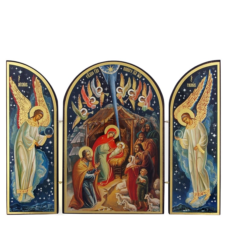The triptych icon "Rozhdestvo Hristovo" No. 2 is a high-quality religious work of art, made of wood with precise double embossing. It measures 18 x 24 cm and is perfect as a keepsake, gift or spiritual symbol for your home. This icon depicts the birth of Christ in a beautiful, traditional depiction that combines spiritual depth and artistic beauty. All icons are consecrated by the parish priest of the Church of St. Seraphim of Sarov in the settlement of Sofrino and therefore carry a special spiritual meaning. The craftsmanship and careful design make this triptych icon a unique object that brings joy and blessing to believers.Features:
