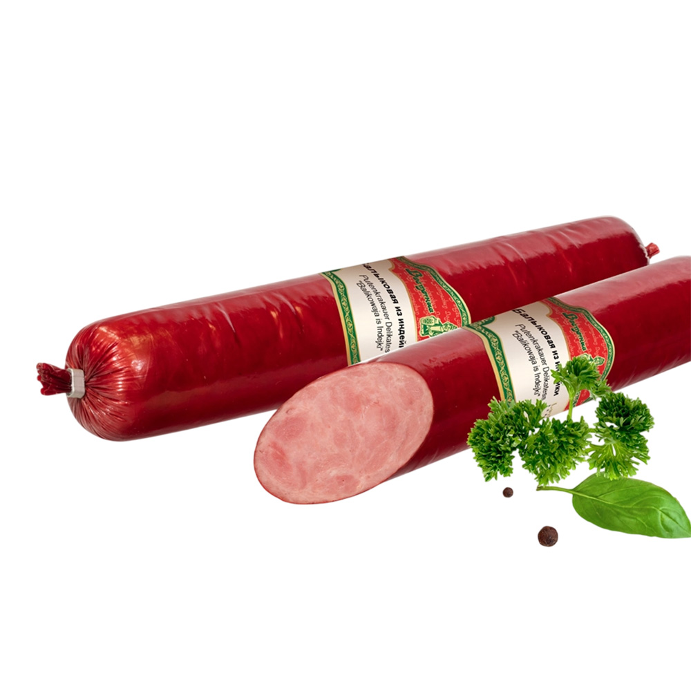 A fine poultry specialty made according to a traditional Russian recipe: juicy turkey krakauer, gently cooked and lightly refined over aromatic smoke.The sausage impresses with its tender consistency, balanced taste and a fine smoky note that is neither too dominant nor too mild.