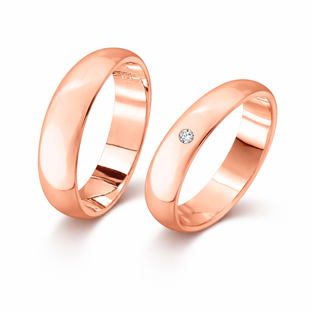Wedding rings in 585 red gold, width approx. 5.0 mm, with brilliant-cut diamond 0.03 ct. (WSI) or without - price per ring