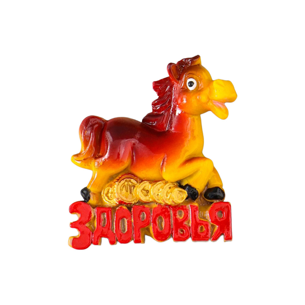 "Year of the Horse" magnet - lucky charm with Russian wishes, 6x6 cm