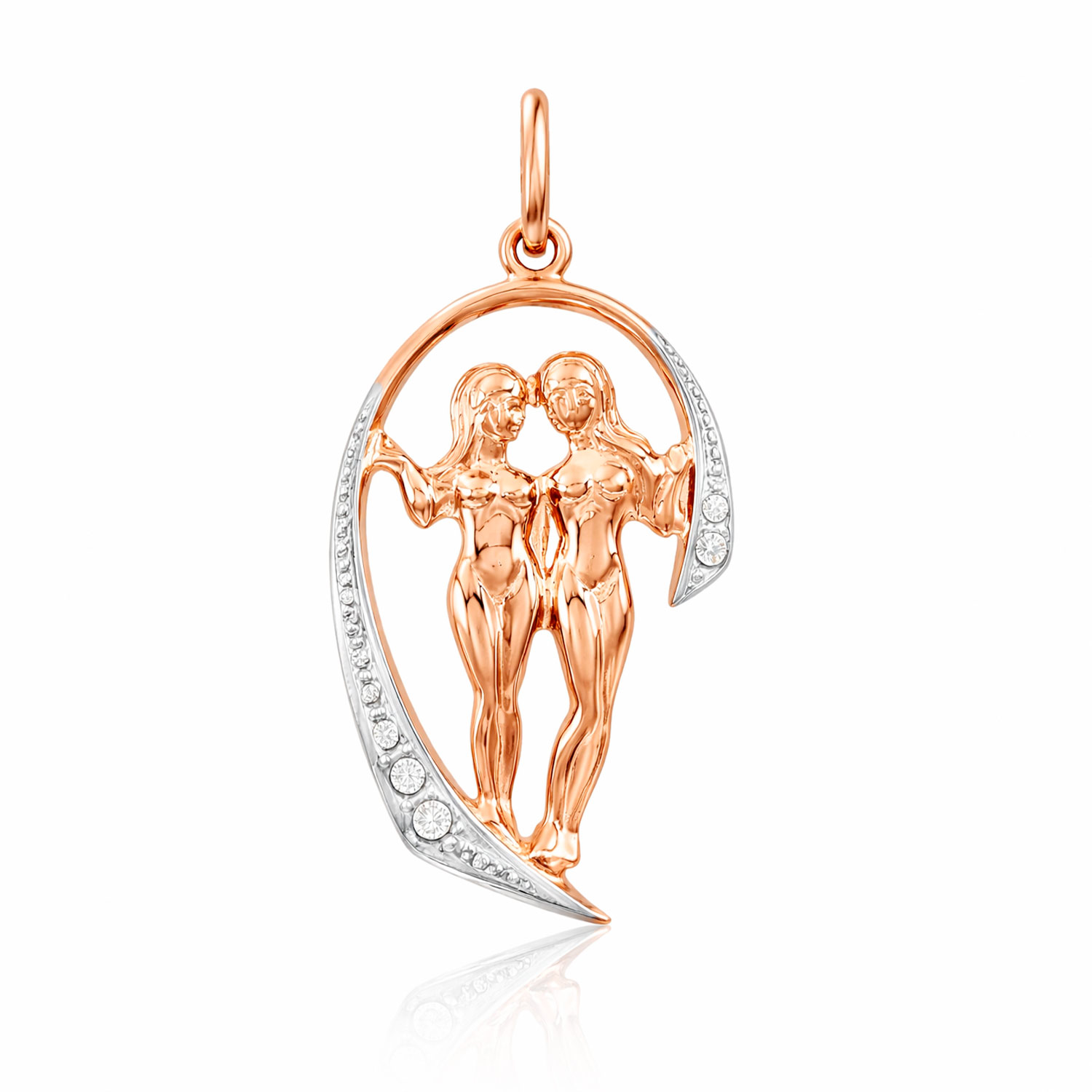 Zodiac sign pendant Gemini (21.05-21.06) in 585 rose gold with 4 zirconia, rhodium-plated, height ≈ 26 mm