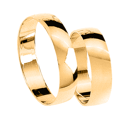 Classic wedding rings in 585 yellow gold, with a shiny surface, width ≈ 5 mm.