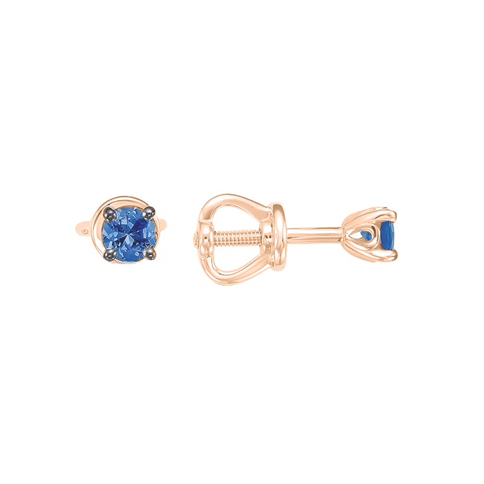 Beautiful stud earrings in 585 rose gold, with sapphires 0.396 ct, diameter ≈ 3 mm.