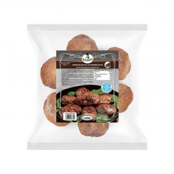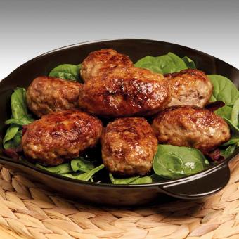 Свинина (87%), лук, картофель, мука пшеничная, вода питьевая, яйца, соль, перец, обжаренные на рапсовом масле