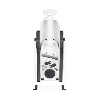 - Просто установите регулировочное колесико на желаемую толщину нарезки 0,5-8 мм - секрет во встроенном устройстве смены лезвий!