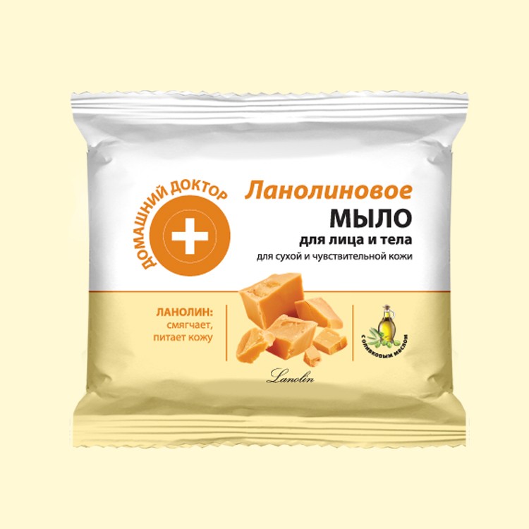 Ланолин — Ñто природный жир животного проиÑхождениÑ, полученный из овечьей шерÑти. Ðтот продукт прекраÑно впитываетÑÑ ÐºÐ¾Ð¶ÐµÐ¹, Ð´ÐµÐ»Ð°Ñ ÐµÐµ мÑгкой. Данный продукт имеет много подобного Ñ Ñ‡ÐµÐ»Ð¾Ð²ÐµÑ‡ÐµÑким кожным жиром, который ÑвлÑетÑÑ Ð¿Ñ€Ð¸Ñ€Ð¾Ð´Ð½Ñ‹Ð¼ барьерным Ñлоем. При иÑпользовании мыло Ð´Ð»Ñ Ð»Ð¸Ñ†Ð° и тела «Ланолиновое» Ñ Ð¾Ð»Ð¸Ð²ÐºÐ¾Ð²Ñ‹Ð¼ маÑлом, воÑк образует тонкую пленку, таким образом ÑƒÐ´ÐµÑ€Ð¶Ð¸Ð²Ð°Ñ Ð²Ð»Ð°Ð³Ñƒ внутри кожи, Ð´ÐµÐ»Ð°Ñ ÐµÐµ мÑгкой и упругой, защищает от внешних неблагоприÑтных факторов окружающей Ñреды. Ланолиновое мыло — прекраÑное ÑредÑтво Ð´Ð»Ñ ÐºÑƒÐ¿Ð°Ð½Ð¸Ñ Ð´ÐµÑ‚ÐµÐ¹ и Ð´Ð»Ñ Ñтирки детÑкой одежды.СпециалиÑты торговой марки Домашний Доктор Ñоздают Ñвою продукцию Ñ ÑƒÑ‡ÐµÑ‚Ð¾Ð¼ потребноÑтей вашей кожи. Именно поÑтому мыло Ð´Ð»Ñ Ð»Ð¸Ñ†Ð° и тела «Ланолиновое» Ñ Ð¾Ð»Ð¸Ð²ÐºÐ¾Ð²Ñ‹Ð¼ маÑлом не Ñодержит отдушек и парабенов, которые могут навредить кожному покрову. МÑгкое ухаживающее ÑредÑтво бережно очищает и деликатно ухаживает за кожей, Ð´Ð°Ñ€Ñ ÐµÐ¹ ÑвежеÑть, чиÑтоту и мÑгкоÑть. Очищающий продукт Ñ Ð»Ð°Ð½Ð¾Ð»Ð¸Ð½Ð¾Ð¼ — Ñто комфорт, мÑÐ³ÐºÐ°Ñ ÐºÐ¾Ð¶Ð° и уверенноÑть в ÑобÑтвенной краÑоте.СпоÑоб применениÑ: нанеÑите на влажную кожу, легко помаÑÑируйте, Ñмойте теплой водой.