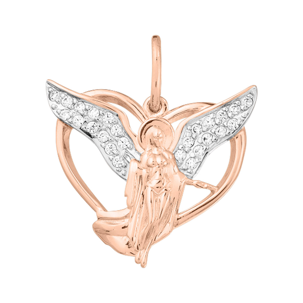 Подвеска-сердце "Ангел" из красного золота 585 пробы с цирконием