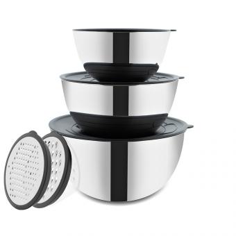 BEM Набор мисок из нержавеющей стали с 2 терками (мелкой и крупной) и крышками 16 см, 20 см и 24 см