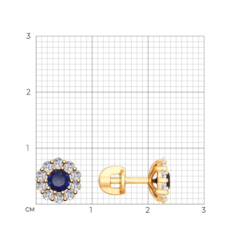 Золотые серьги 585 пробы с синими корундами и фианитами