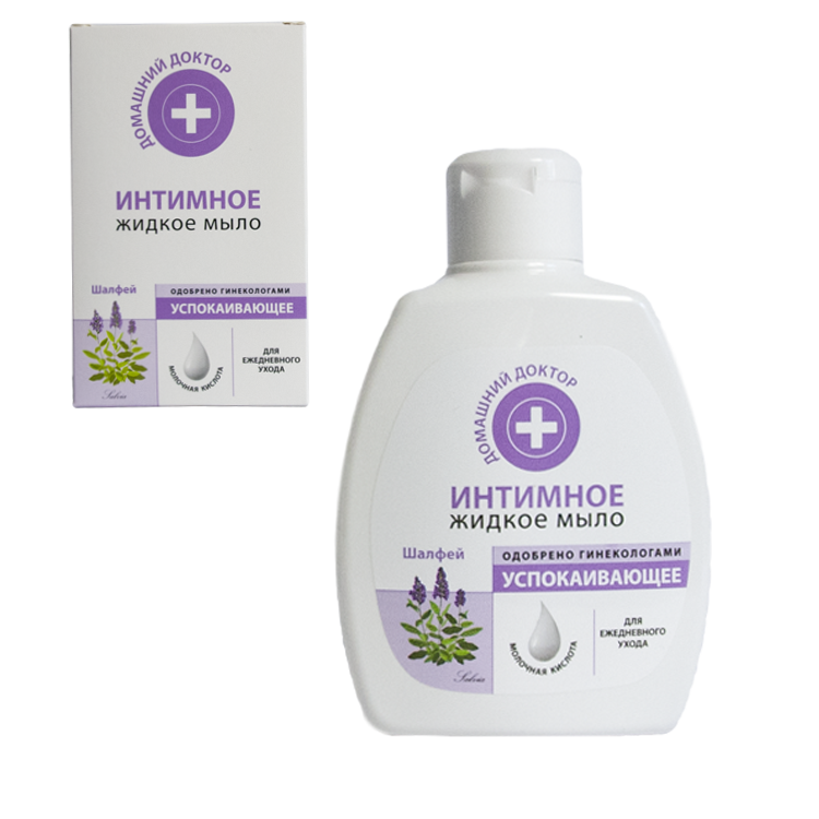 Жидкое интимное мыло отличается от обычного жидкого мыла более мягкой формулой, предназначенной для ухода за деликатной кожей интимной зоны. Она прошла дерматологические тесты и была одобрена специалистами в сфере гинекологии. Средство не только очищает, но и устраняет дискомфорт, обеспечивая ощущение свежести на протяжении дня. Жидкое интимное мыло «Успокаивающее» от экспертов бренда «Домашний Доктор» деликатно воздействует на интимные зоны, очищает и ухаживает за ними благодаря специальному комплексу мягких моющих ингредиентов. Экстракт шалфея оказывает регенерирующее и успокаивающее действия, а молочная кислота не нарушает естественный рН. Приятная кремовая консистенция подходит для ежедневного использования. Способ применения: нанести небольшое количество средства, смыть водой.