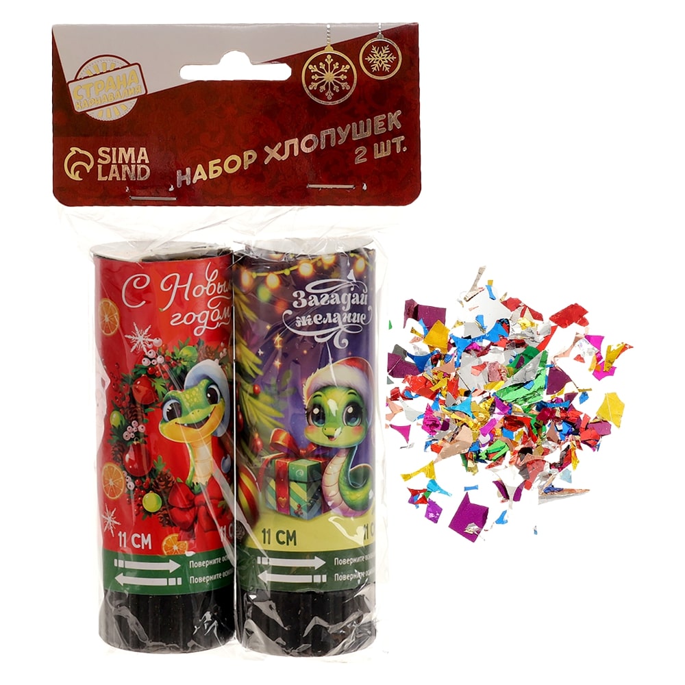 Вращающаяся конфетти-пушка "Загадай желание", фольга, набор серпантина 2 штуки, 11 см