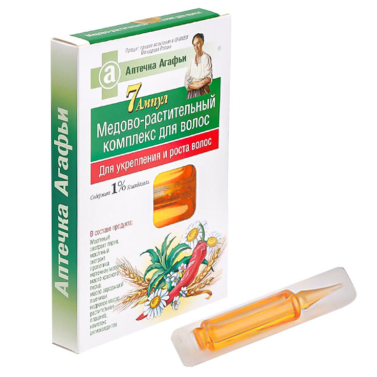 - Медово-растительный комплекс для укрепления и роста волос в ампулах "Рецепты бабушки Агафьи" 7 х 5 мл