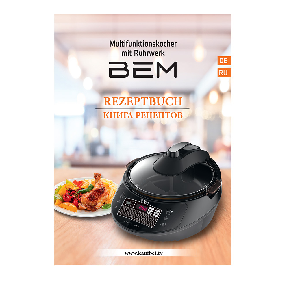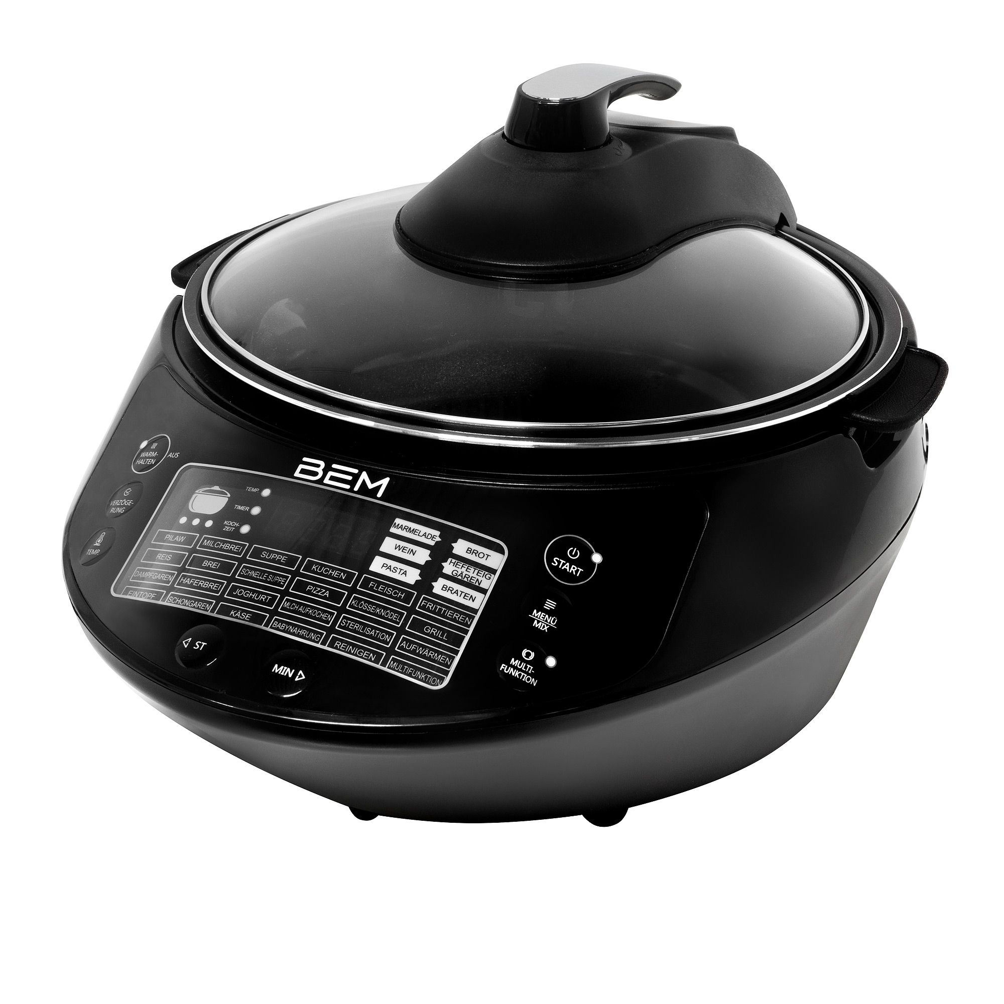 При необходимости блюдо перемешивается, а затем варится, жарится, варится или готовится на пару. Программу можно даже запрограммировать заранее. Таким образом, желаемое блюдо будет готово и горячим до самого конца. А можно просто откинуться на спинку кресла, расслабиться и позволить мультиварке BEM Uno 30 в 1 делать свою работу.