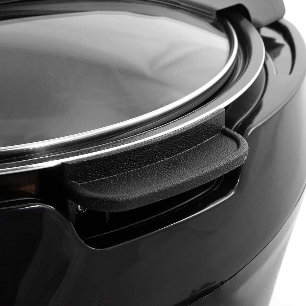 Даже функция очистки мультиварки задается одним нажатием кнопки. На панели управления есть цифровой дисплей, на котором отображается время приготовления, температура и таймер.