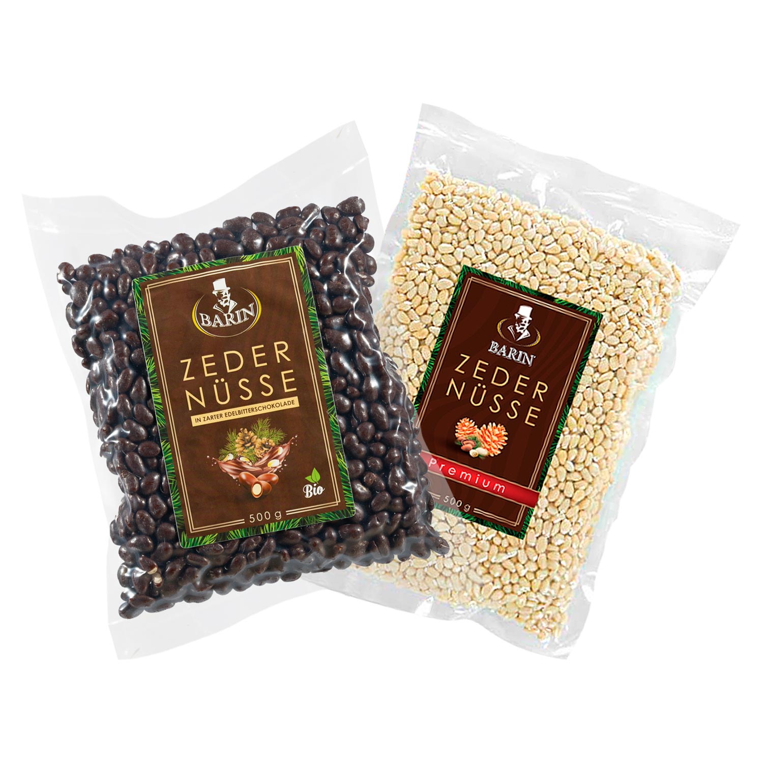 BARIN Набор кедровых орешков из Сибири "Иван да Марья": кедровые орешки премиум-класса 500 г + кедровые орешки в темном шоколаде 500 г (общий вес нетто 1000 г)