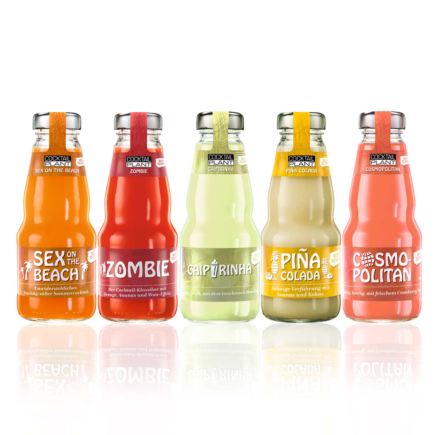 Cocktail Plant Дегустационный набор алкогольных коктейлей Классический: Zombie, Pina Colada, Caipirinha, Sex on the beach & Cosmopolitan (5 x 0.2 л, 10.1% алк. - вкл. тару 5x0,20€)