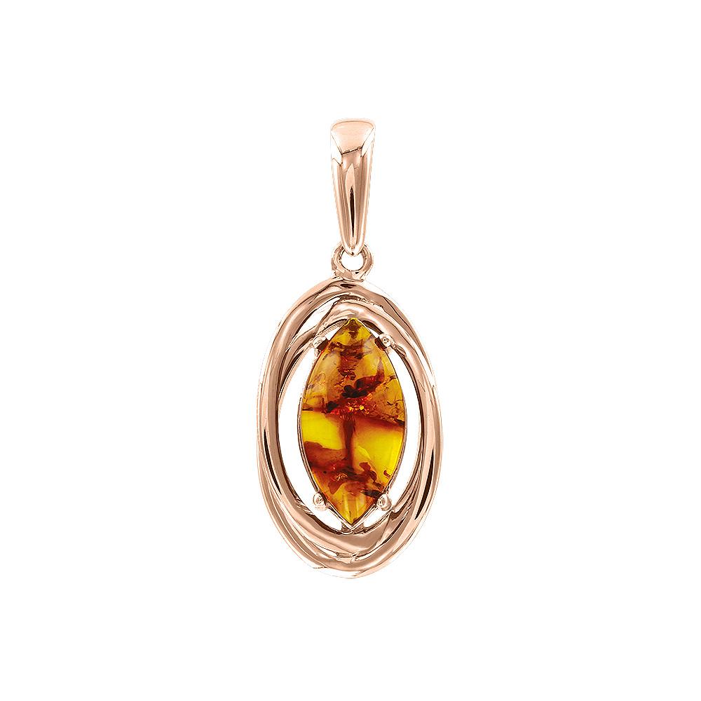 Подвеска из красного золота 585 пробы с янтарем