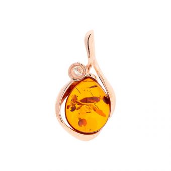 Подвеска из позолоченного серебра 925 пробы с янтарём и фианитом