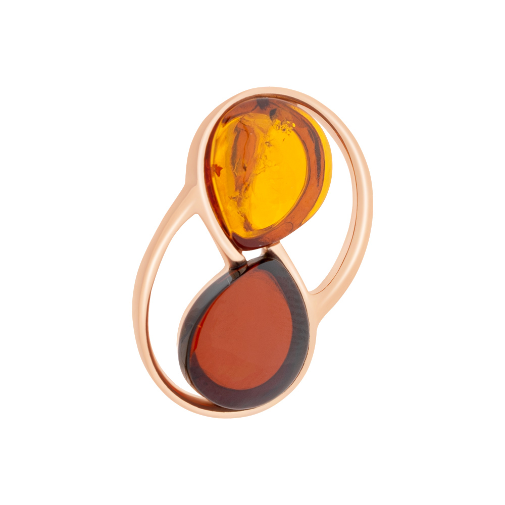 Женское кольцо из розового позолоченного серебра 925 пробы с вишневым и коньячным янтарем
