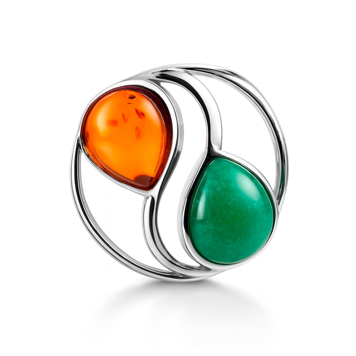 Подвеска из серебра 925 пробы с янтарем коньячного цвета и зеленым кварцем