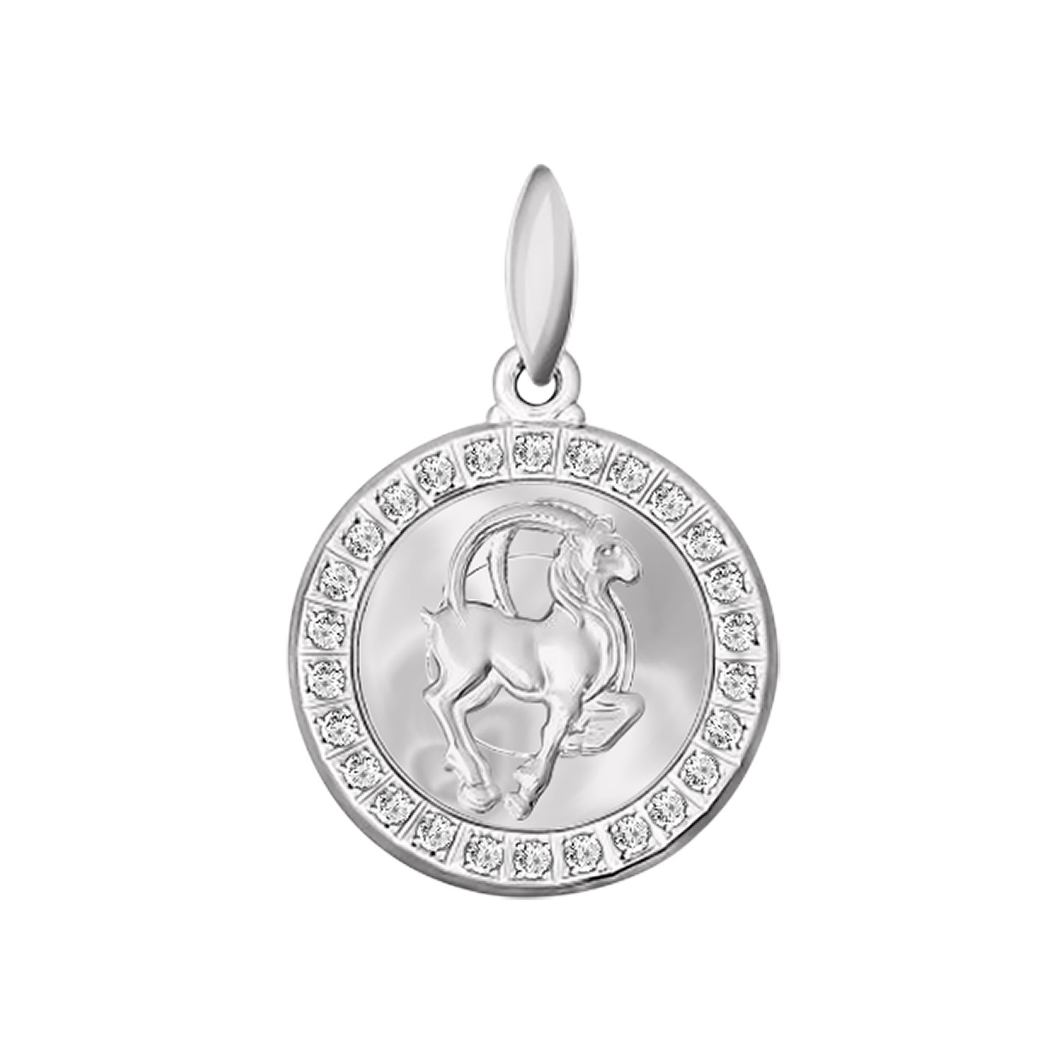 Подвеска знак Козерог из серебра 925 пробы с фианитами