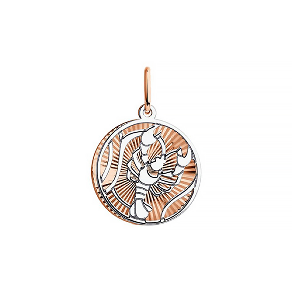 Подвеска знак зодиака Рак из красного/белого золота 585 пробы с алмазной гранью
