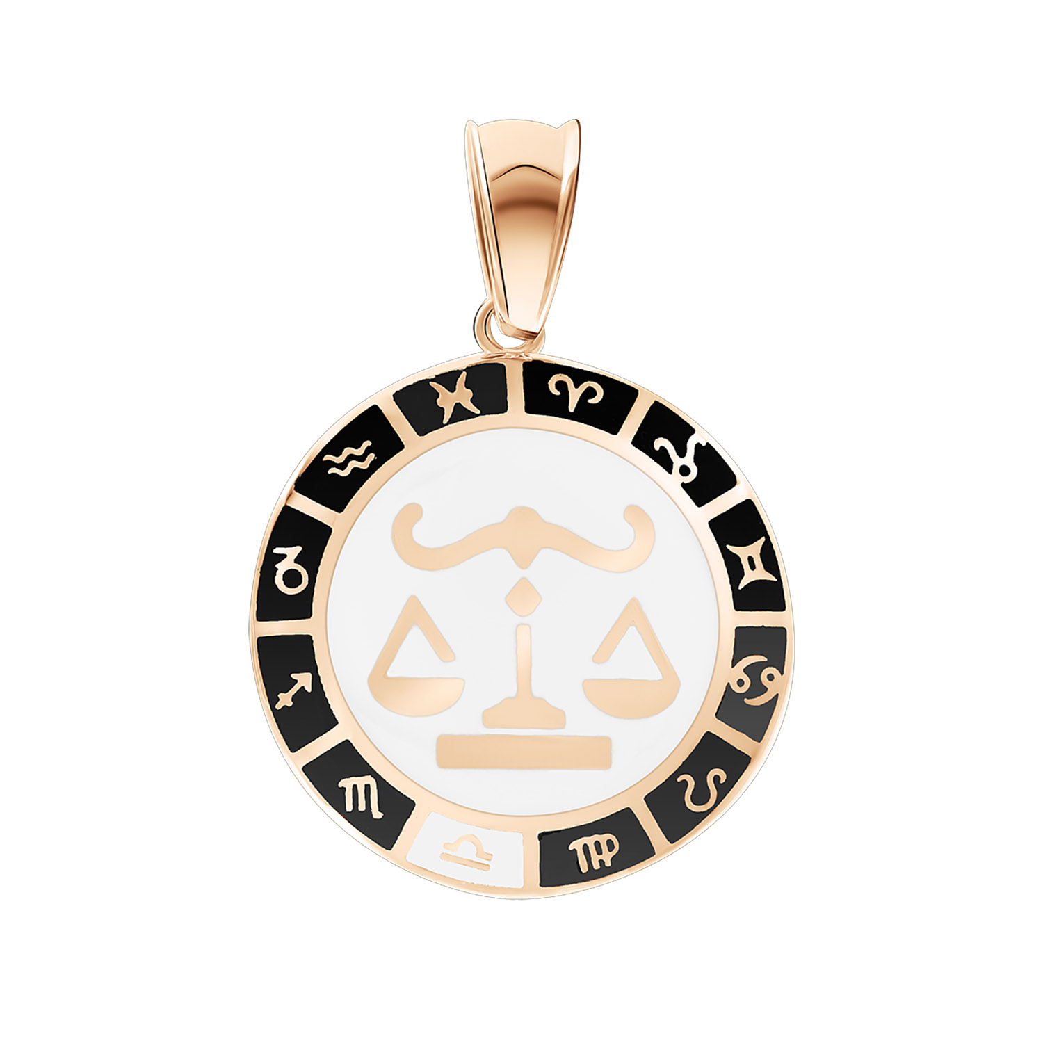 Подвеска знак зодиака Весы из красного золота 585 пробы с эмалью