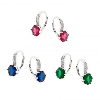 Серьги из серебра 925 пробы с круглыми фианитами, трех разных цветов