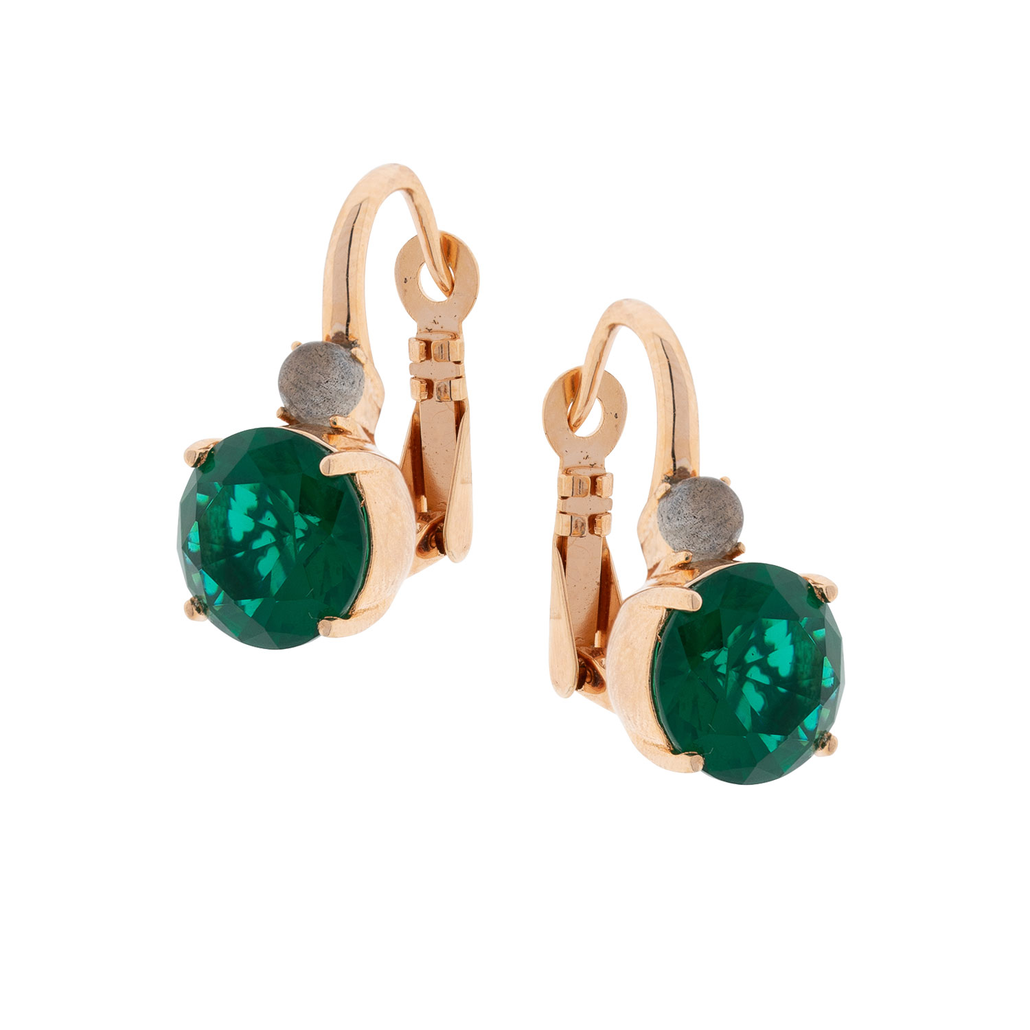 Серьги из серебра 925 пробы с зелеными стеклянными кристаллами, позолота
