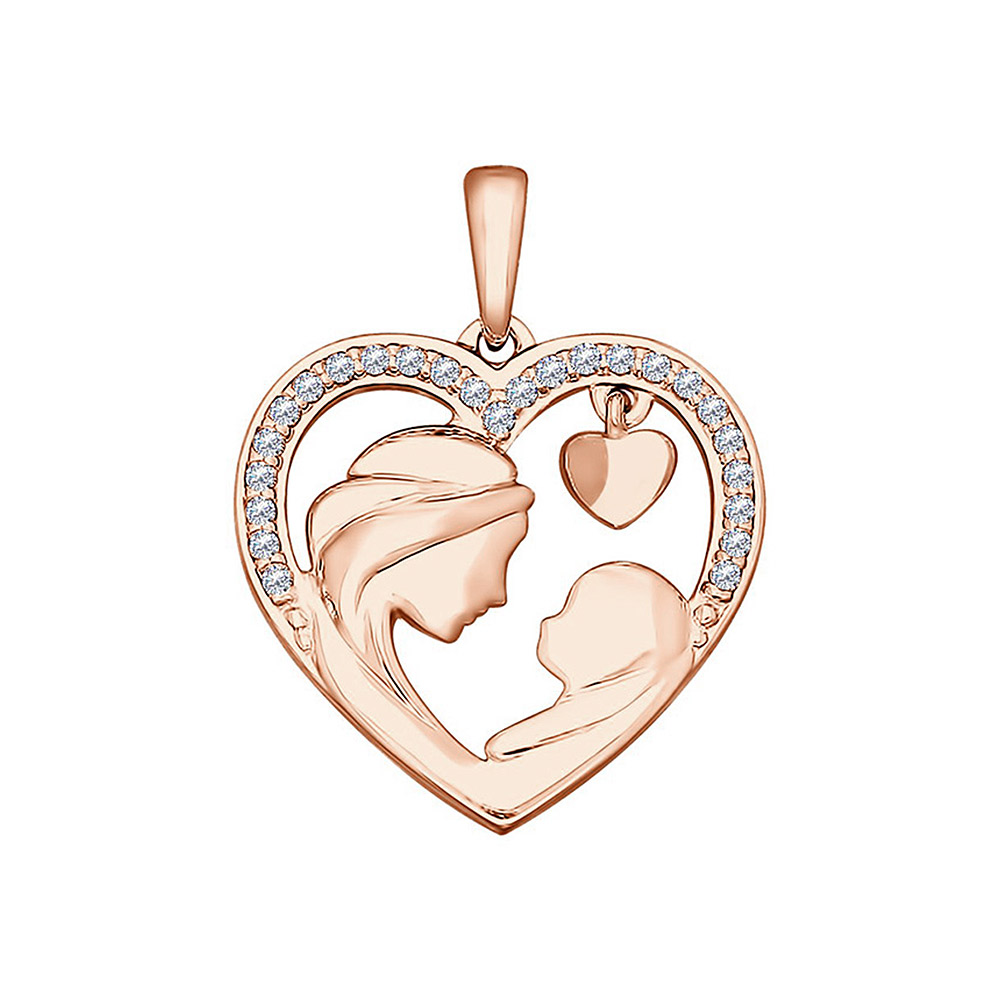 Подвеска-сердце мать и дитя из позолоченного серебра 925 пробы с фианитами от Sokolov