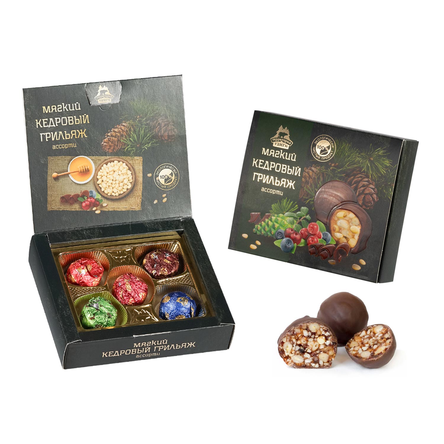 Конфеты «Мягкий кедровый грильяж ассорти» (классический, с клюквой, брусникой, черникой, сосновой шишкой), 75 г