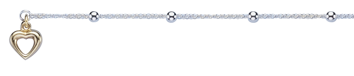 Браслет ножной из серебра 925 пробы с маленькой подвеской-сердечком и застежкой-шпрингель