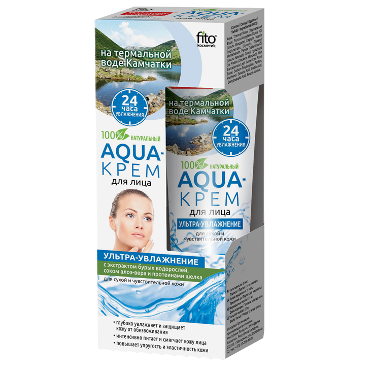 - Aqua-крем для лица "Fito Kosmetik" экстракт бурых водорослей, сок алоэ-вера и протеины шелка, 45 мл