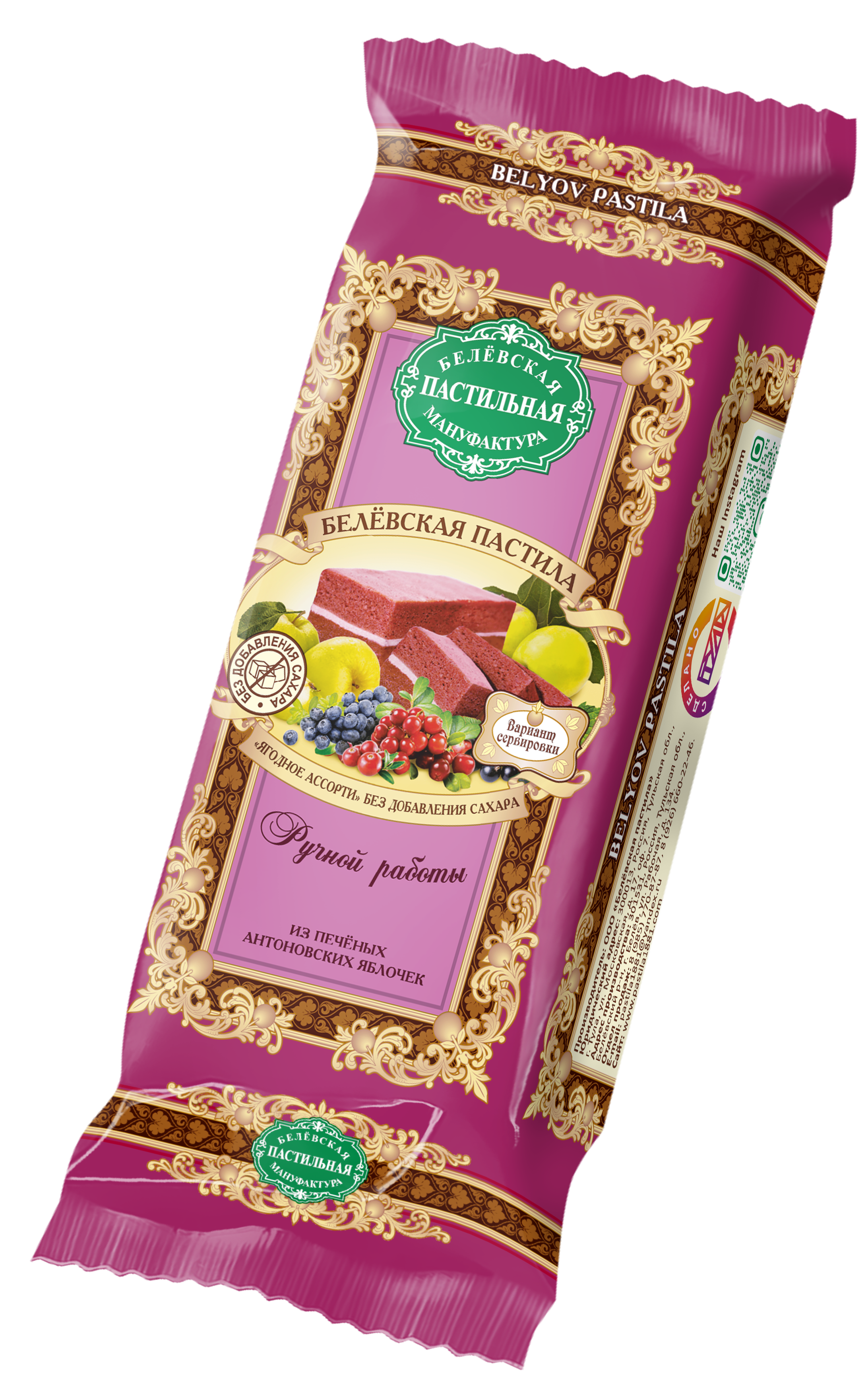 Это лакомство готовится вручную без консервантов, красителей и усилителей вкуса.Пастила изготавливается по традиционному рецепту, который существует уже более 100 лет и не изменился до сих пор. Рецепт был придуман славянскими крестьянами, которые делали пастилу из яблок и вручную перерабатывали плоды яблони в нежное пюре. Именно технология приготовления придавала пастиле неповторимый вкус, который Белев бережно сохранил.