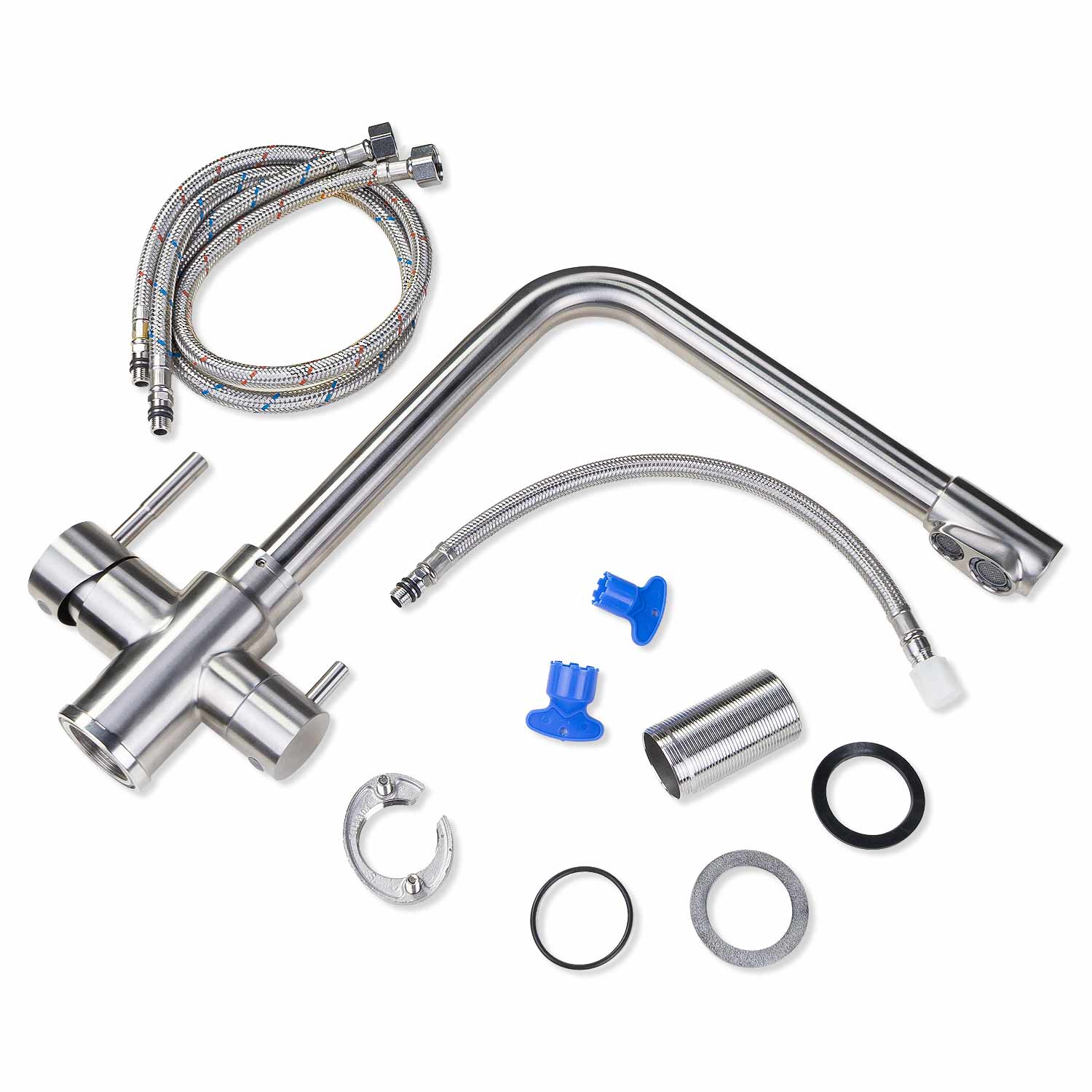BEM 3-ходовой кран 3-в-1 сочетает современный дизайн и качественную нержавеющую сталь 18/10. Он подаёт горячую, холодную и фильтрованную воду напрямую из одного смесителя – с раздельными каналами без смешивания. Все детали, контактирующие с водой, подходят для питьевой воды (прошли проверку KTW).Преимущества: