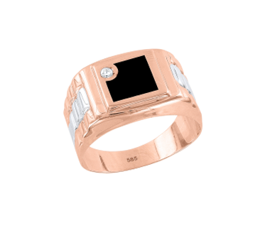 Благородное мужское кольцо из красного золота 585 пробы с фианитом.