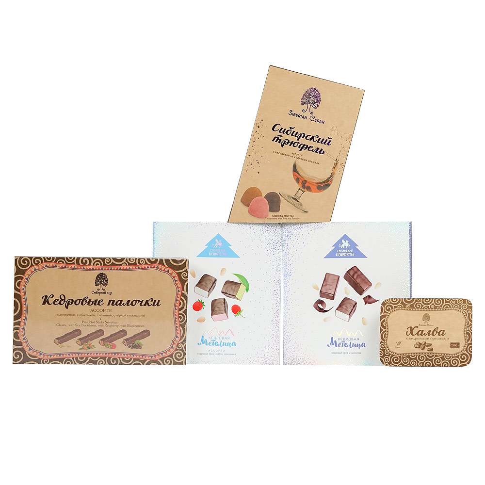 Большой премиальный кедровый набор: шоколадные конфеты и халва (790 г)