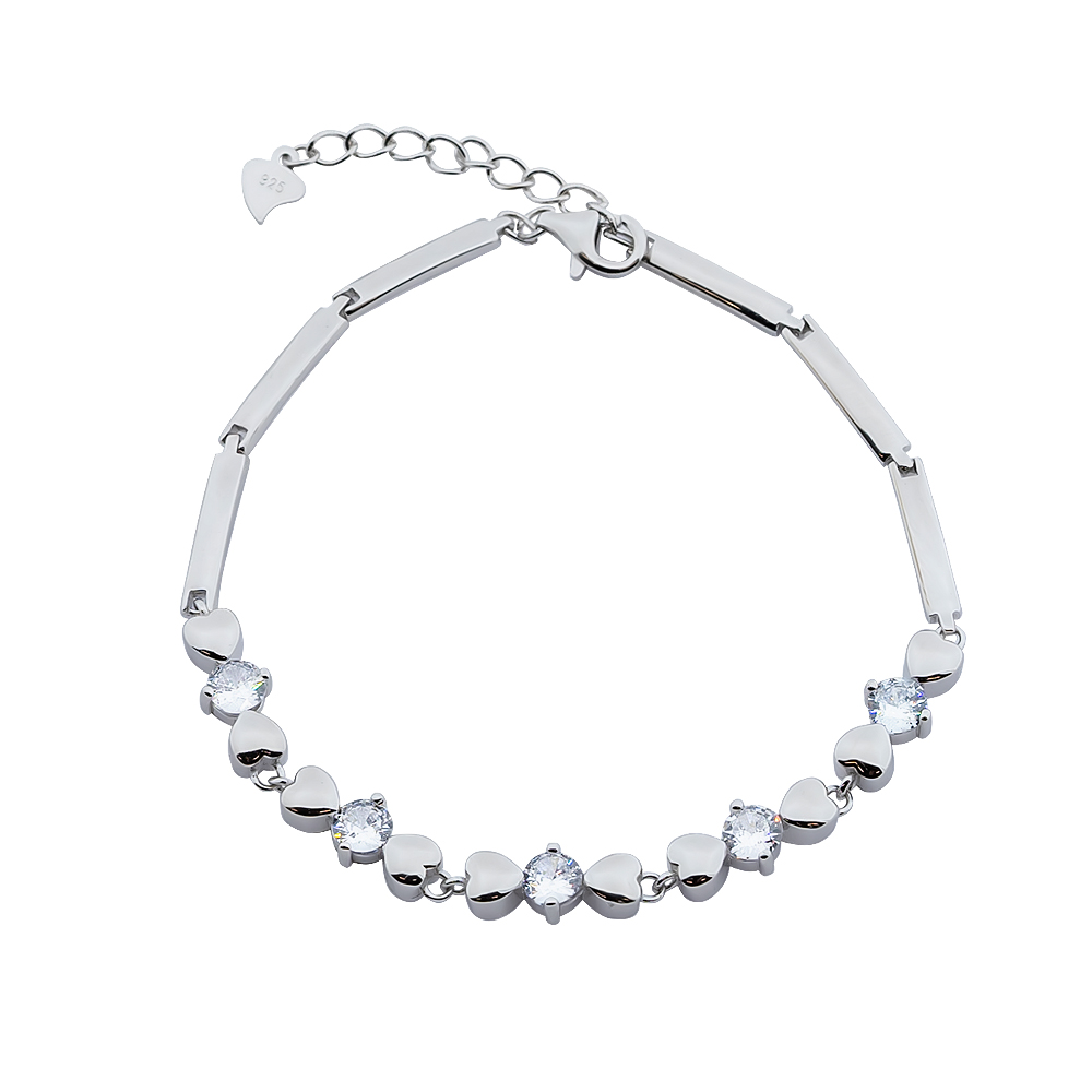 Браслет из серебра 925 пробы с сердечками и бесцветными фианитами